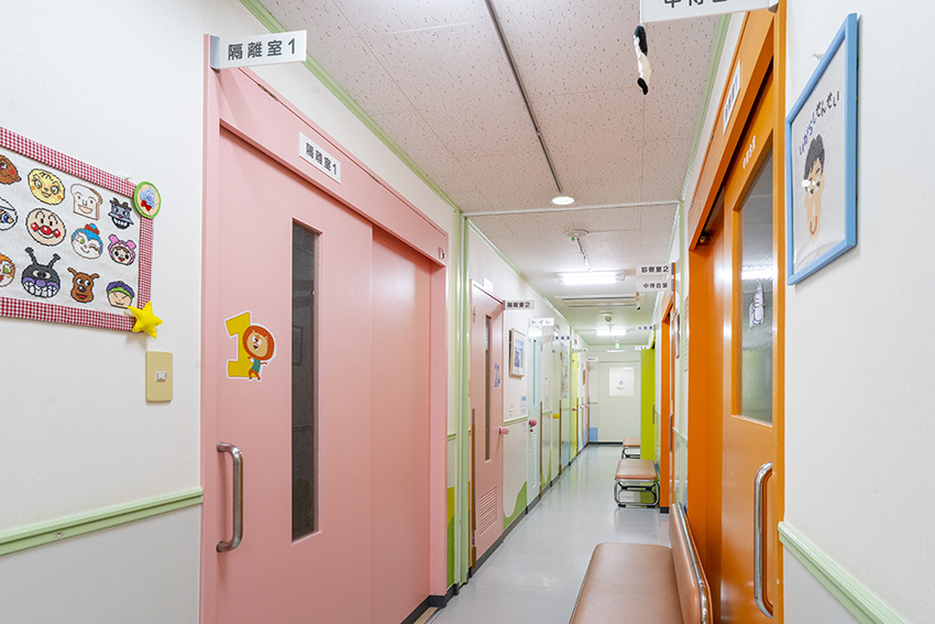 - 伝染病隔離:はしか、水痘、おたふく、風疹などの伝染病は出入り口も別の隔離室で診療し、他の患者さんとの接触を避けるようにしています。
